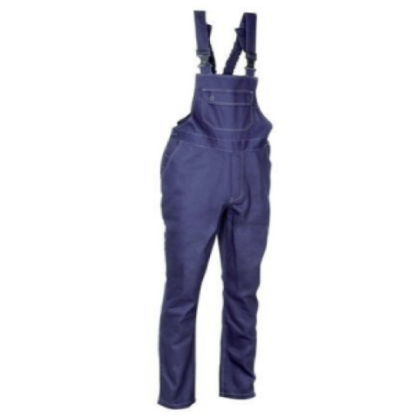 le bretelle con elastico, sono regolabili secondo l’altezza del lavoratore, i fianchi sono chiusi da bottoni estraibili che lasciano ampia libertà di movimento; sulla parte anteriori sono presenti due ampie tasche con taglio sbieco, un taschino frontale chiuso con patta e bottone, una tasca portametro e una tasca posteriore chiusa con bottone.